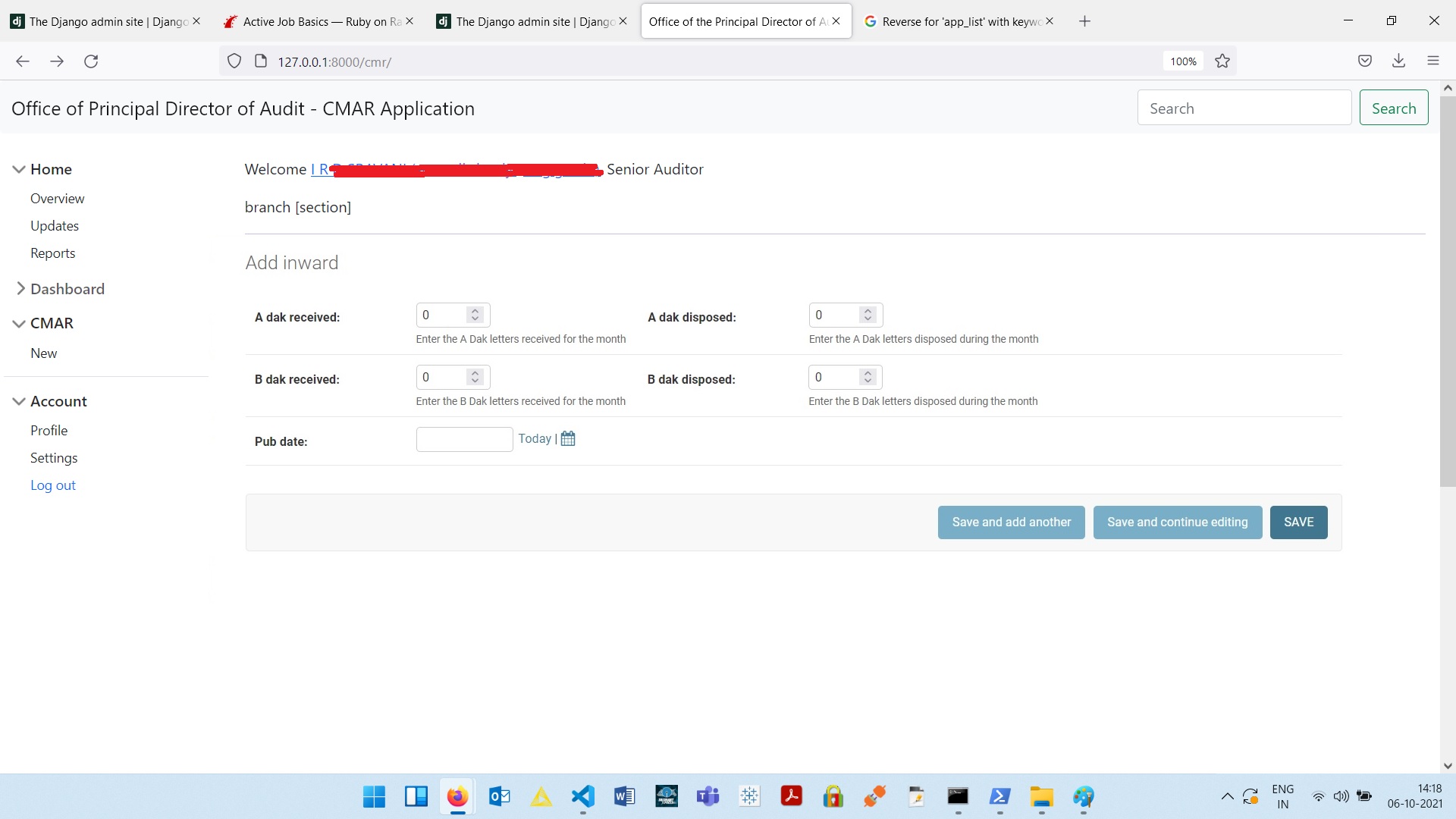 I resolved the reverse for app_list by passing context to the template from my view. However, I am getting KeyError at Add in admin/base.html. Do I need to extend the admin/base.html also? which I am not doing.