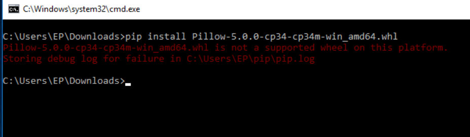 pip install Pillow-5.0.0-cp34-cp34m-win_amd64.whl