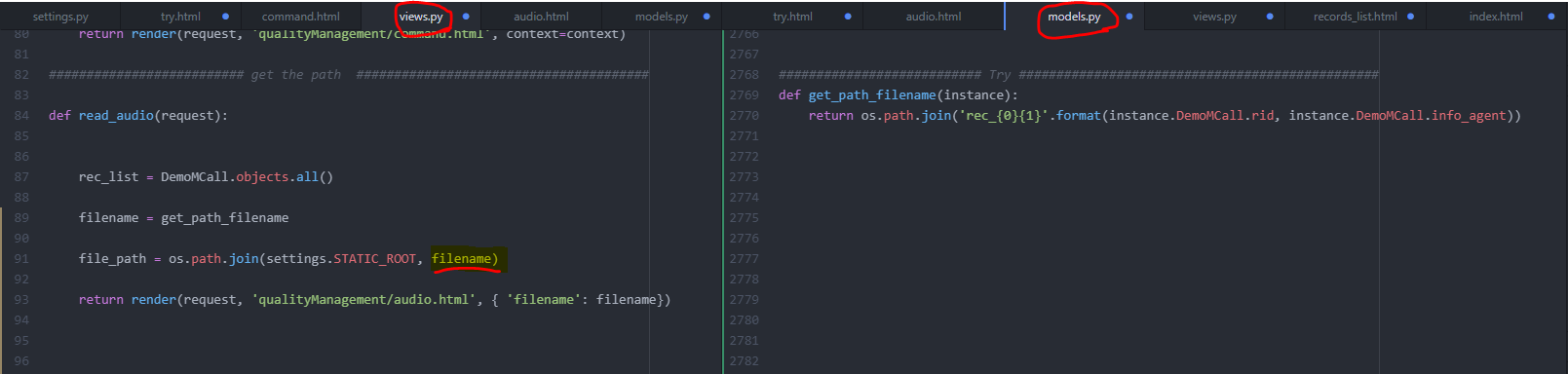 The views.py file: