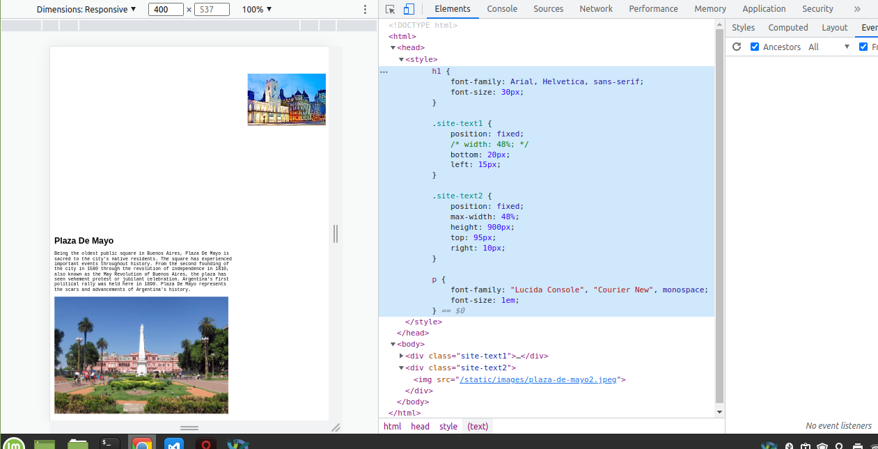 Hello everyone. I am trying to change the size of a second image on a web page by using CSS inside a file called PlazaDeMayo.html.